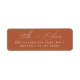 Elegante weiße Skriptkalligraphie von Braut und Bräuchen Adresse auf rustikalen Terrakotta-Etikett.