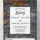 Diese elegante Schwarz-Weiß-Kalligrafie-Einladung eignet sich für eine moderne Hochzeit im Sommer. Das romantische minimalistische Design bietet Elegante rustikale botanische Herbst-Rose Blumen Hochzeit All in One Wedding Invite