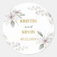 Der Hochzeitsaufkleber ist für die Abstimmung mit unserer rustikalen Dusty White Blume Aquarellgolden Hochzeitskollektion konzipiert und zeichnet sich durch seine farbenfrohen, weißen Blume und grünen Blätter aus, die mit einem klassischen Schriftart in Gold gepaart sind. Teil der Hochzeitskollektion Elegant Dusty White Blume