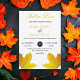 Diese elegante Hochzeit im Herbst lädt zu einer modernen Herbsthochzeit ein. Das schlichte Design ist mit vergoldeten Blätter aus Ahorn und eleganter Schwarz-Gold-Typografie auf weißem Hintergrund gestaltet