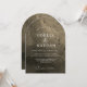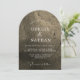 Laden Sie Ihre Gäste mit dieser atemberaubenden bogenförmigen Hochzeitseinladung ein, die eine reiche, dunkle Holzkornstruktur aufweist, die rustikale Eleganz ausstrahlt. Dieses moderne und dennoch organische Design erfasst perfekt die romantische Essenz einer Wald- oder Landhochzeit.