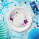 Diese eleganten rustikalen Lila Blush Wedding Paper Teller verfügen über einen zarten Kranz mit lila und rot rosa Rosen im Aquarellstil, die mit weicher Vegetation gepaart sind. Diese kreisförmige Anordnung umrahmt den Teller wunderschön und verleiht ihm eine Touch von Romantik und rustikalem Charme. Diese Teller eignen sich ideal für Hochzeitsfeiern, Brautpartys oder Verlobungsfeiern und sorgen für ein stilvolles und einheitliches Ambiente.