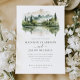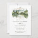 Elegante rustikale Pine Mountain Landscape Wedding Invitation verfügt über eine einzigartige Kalligraphie-Skript gepaart mit stilvollem Typ und eine elegante Berglandschaft Wasserfarbe.