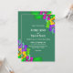 Diese elegante tropische Hochzeitseinladung eignet sich perfekt für eine moderne Hochzeit im Sommer. Das schlichte Design zeichnet sich durch gelbe, lila und rosa Blume mit eleganter weißer Typografie auf grünem Hintergrund aus.