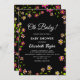 Diese elegante botanische Babydusche lädt zu einer modernen, blumigen Babydusche ein. Das schlichte Design besticht durch einen botanischen Garten mit lila und magentafarbenen Rose und grünen Blätter mit eleganter weißer Typografie auf fett schwarzem Hintergrund.