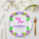 Diese elegante, tropische Geburtstagspapier eignet sich perfekt für eine moderne Sommergeburtstagsfeier. Das schlichte Design zeichnet sich durch gelbe, lila und magentafarbene Blume mit eleganter bunter Typografie auf weißem Hintergrund aus.