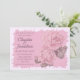 Elegantes rustikales Design mit rosa Rosen, perfekt für eine romantische Hochzeit. Auf der Rückseite der Einladung können Sie die Details Ihres Empfangs angeben. Personalisieren Sie es mit Ihrem Text, Schriftart oder Hintergrund.