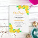 Diese elegante Baby-Dusche mit Sonnenblumen lädt zu einer modernen, blumengeschmückten Babydusche ein. Das schlichte Design ist mit gelben und orangefarbenen Sonnenblumen und eleganter schwarz-orangefarbener Typografie auf weißem Hintergrund gestaltet.