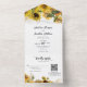 Elegante Rustikale Sonnenblume Gold QR Code Hochze All In One Einladung
