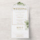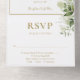 Alles in einer Hochzeitseinladung mit hübscher, grüner Goldtypografie und elegantem Goldbogen. Die Einladung enthält eine perforierte RSVP-Karte, die für Sie individuell adressiert oder links als leere Karte für die Handschrift der Adressdaten Ihres Gastes verwendet werden kann. Entwickelt von Thisisnotme©