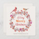 Die rustikale, moderne Weihnachtskarte mit niedlichem, rosa, lila und orangefarbenem Holly-Beerenkranz mit Laub und zwei Vögeln - einem Kardinal und einem Rotkehlchen - und einer modernen Typografie im zeitgenössischen Stil "A Very Merry Christmas", die auf einem himmlisch blütigen Hintergrund steht. ++++++++++++ Persönliche Gestaltung mit drei Zeilen Wünschen und Ihrem Namen! ++++++++++ Sie können Ihren persönlichen Text und Ihre Unterschrift auf der Rückseite Ihrer Handschrift hinzufügen.