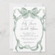 Einladung zur Besichtigung der grünen Ribbon-Babydusche. Feiern Sie die Mutter mit diesem eleganten und zeitlosen Design, perfekt für eine verträumte Babydusche. Ein sanfter, grüner Wasserfarbenbogen mit fließenden Bändern in passenden Farbtönen, nimmt die Bühne in der Mitte und verleiht ihm eine ruhige und raffinierte Touch. Die Babydusche-Details sind in einem eleganten ovalen Design gerahmt, das in einer Mischung aus grau-grau-handgeschriebenem Drehbuch und eleganten Serif-Schriftart geschrieben wurde und so einen Look schafft, der Charme und Raffinesse in Einklang bringt. Dieses Design verbindet Vintage Anziehungskraft und bewahrt gleichzeitig eine moderne und stilvolle Ästhetik, die es ideal für jede Art von Ansammlung macht, von Party im Garten bis hin zu gemütlichen Feiern im Innenbereich. Die Salbei-grüne Farbpalette strahlt ein beruhigendes und geschlechtsneutrales Ambiente aus, das sich ideal für diejenigen eignet, die das Geschlecht des Babys behalten haben, oder für alle, die sanfte, natürliche Farbtöne Liebe haben. Vollständig anpassbar, können Sie Text, Schriftart und Layout an Ihre individuelle Vision und Ihr individuelles Design anpassen. Dieses vielseitige Design, das als gedruckte Einladung oder als Download-Datei erhältlich ist, Set den Ton für eine unvergessliche Babydusche und feiert die Mutter mit Anmut und Eleganz.