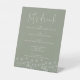 Elegantes Sage Green Minimalistisch Boho Floral Wedding Pedestal Schild, minimalistischer Stil, der leicht mit Ihrem Foto und Text aktualisiert werden kann. Wenn Sie Hilfe bei der Personalisierung dieses Produkts benötigen. Bitte kontaktieren Sie mich mit diesem Nachrichtenkopf unten und ich werde Ihnen gerne weiterhelfen.