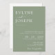 Eine elegante, einfache minimalistische Weise Grünen Hochzeit Einladung. Die eine einfache grüne Vorlage für das gesamte Design enthält. Mit weißen Namen von Braut und Bräutigam. Und die Namen der Braut und des Bräutigams auf der Rückseite anpassbar. Es ist erschwinglich und es ist auch digitale elektronische e-Einladung . Alle Informationen können durch Anklicken des Buttons Personalisieren angepasst werden. So packen Sie es und machen Sie es zu Ihrem, sodass Sie verlobt und aufgeregt einladen .