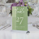 Elegante Sage Green mit Elfenbeinskripthochzeit Tischnummer