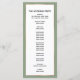 Dieses elegante Hochzeitsprogramm mit modernem Drehbuch und schwarzem Text mit einer künstlerischen Palme und einer metallisch-vergoldeten Kupfer-Grenze der Rose verleiht Ihren Gästen ein elegantes Design. Passen Sie es mit Ihren Namen, Hochzeitsdatum, Dankeschön-Nachricht und Zeremonie Details an. Die Namen der Hochzeitsfeier sind auf der Rückseite. Auf der Vorderseite und auf der Rückseite befindet sich ein koordinierender, grün hinterer Hintergrund. Bitte kontaktieren Sie mich, wenn Sie Hilfe oder eine individuelle Bestellung benötigen.