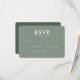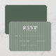 Diese Hochzeits-RSVP-Karte verfügt über ein modernes, minimalistisches Design mit abwechselnden hellen und dunklen grünen Streifen in einer gedämpften Salbeipalette. Das saubere Layout enthält eine elegante serifenbetonte Typografie, die die Gäste durch die Antwortmöglichkeiten führt und ein formelles, aber zugängliches Gefühl erzeugt. Perfekt für zeitgenössische Hochzeiten kombiniert diese Karte Einfachheit mit Raffinesse und sorgt für Klarheit und Benutzerfreundlichkeit, während sie einen einladenden Ton beibehält.