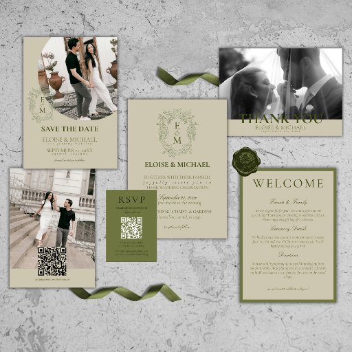 Elegant Sage Green Crest Monogram Wedding Designt von Molly H