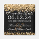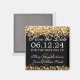 Elegantes Hochzeitsdesign "Save the Date" mit goldenen Lichtern , individuellen Namen und Datteltext.
