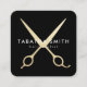 Elegante schicke Goldfolienschere mit Haarstil sch Quadratische Visitenkarte