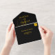 Dieses elegante Schwarz-Gold-Hochzeitsangebot eignet sich perfekt für eine moderne Hochzeit, das schlichte Design zeichnet sich durch elegante goldene Kalligraphie auf schwarzem Hintergrund aus.