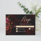 Elegante schick dunkelrote burgundy und schwarze Hochzeitskarten rsvp. Set den Ton für Ihre elegante und launische Hochzeit mit dieser schicken roten und schwarzen Blütenkarte. Dieses Design mit seinen tiefen rote Rosen, den weinroten Blüten und dem dunklen Laub verströmt Romantik und Eleganz mit einer Touch gotischer Anziehungskraft. Die raffinierte Typografie, die moderne Schrift mit klassischen Serif-Schriftart kombiniert, schafft ein stilvolles und poliertes Aussehen. Diese RSVP-Karte eignet sich hervorragend für dramatische, Vintage oder luxuriöse Hochzeiten von Abenden und ergänzt Ihre Hochzeitssuite.