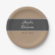 Elegante, grau-beige Typografie Hochzeitspapier Teller. Einfaches Design in Beige- und Dunkelgrau-Farben. Trendy Typografie in Weiß - personalisieren Sie die Braut, den Groom, die Namen der Suite und das Hochzeitstermin.