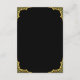 Vervollständigen Sie Ihr königliches Hochzeits-Schreibwarensortiment mit dieser eleganten schwarzen und goldenen Umschlagkarte. Entworfen mit einem reichen matt-schwarzen Hintergrund und einem voll verzierten goldenen Rahmen, ist diese luxuriöse Einsteckkarte perfekt, um die Zeit der Trauung, den Ort des Empfangs, Unterkunftdetails und weitere Informationen für Gäste mitzuteilen.