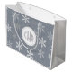 Elegante Schneeflocken im blauen Hintergrund Große Geschenktüte