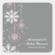Elegante Schneeflocken Rosa & Gray Baby Duschplatz Quadratischer Aufkleber