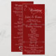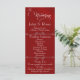 Dieses romantische Design zeigt einen eleganten karmesinroten Hintergrund mit den Details der Hochzeitszeremonie und einem Dankeschön auf der Vorderseite, den Mitgliedern der Hochzeitsgesellschaft und einem Herz-Monogramm auf der Rückseite. Verfügbar in mehreren Farben, um es an Ihr Hochzeitsthema anzupassen. Entwickelt, um es mit der Hochzeitskollektion "Romantic Scroll Hearts & Calligraphy" zu koordinieren.