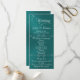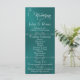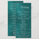 Dieses romantische Design zeigt einen eleganten türkisfarbenen Hintergrund mit den Details der Hochzeitszeremonie und einem Dankeschön auf der Vorderseite, den Mitgliedern der Hochzeitsgesellschaft und dem Herzmonogramm auf der Rückseite. Verfügbar in mehreren Farben, um mit Ihrem Hochzeitsthema koordiniert zu werden. Entwickelt, um mit der Hochzeitskollektion "Romantic Scroll Hearts & Calligraphy" koordiniert zu werden.