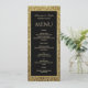 Fügen Sie Ihrem Empfang eine glamouröse Touch mit diesem eleganten Hochzeitsmenü in Schwarz und Gold hinzu. Dieses Menü mit luxuriösen Imitaten, einem goldenen Glitzer und einem feinen schwarzen Hintergrund bietet eine elegante Serif- und Skripttypografie, um Vorspeisen, Hauptgerichte und Desserts zu benennen. Ideal für feierliche, schwarze Krawatte oder Feiertagsfeiern, ergänzt dieses Design die gehobenen Räumlichkeiten und Abend-Feste. Personalisieren Sie Ihre Namen, Ihren Hochzeitstag und Ihre Menüauswahl.