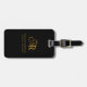 Elegante schwarz-goldene Farbe Gepäckanhänger. Benutzerdefinierte Funktionen (6): 2 Buchstaben Monogramm, Platz für Tel.-Nummer, E-Mail, Website, Ort und soziale Medien, oder andere Informationen.