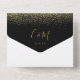 Alles in einer Hochzeitseinladung mit schicken goldenen Glitzer und eleganten Signatur-Script-Namen und Monogramm-Initialen auf schwarzem Hintergrund. Die Einladung enthält eine perforierte RSVP-Karte, die für Sie individuell adressiert oder links als leere Karte für die Handschrift der Adressdaten Ihres Gastes verwendet werden kann. Entwickelt von Thisisnotme©