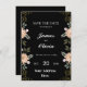 Feiern Sie Ihren besonderen Tag mit dieser luxuriösen Blumen-Hochzeitseinladung in Schwarz und Gold. Mit seinen aufwändigen goldenen Eckdesigns und zarten pfirsichfarbenen Blume schafft es einen raffinierten und zeitlosen Look. Der elegante Script-Schriftart hebt die Namen des Ehepaares hervor, während der fett gedruckte Text wichtige Details wie Datum und Ort verdeutlicht. Ideal für Paare, die klassische und moderne Eleganz in ihrem Hochzeitsgeschoss suchen.