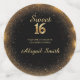 Elegante Schwarz und Gold Sweet 16 Tischkonfetti mit glitzernden Goldakzenten und stilvoller Typografie. Ideal für eine glamouröse Geburtstagsfeier. Vollständig anpassbar mit Name, Datum und Veranstaltungsdetails.