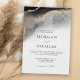 Diese zeitgenössische Hochzeitseinladung mit eleganter Opulenz hat eine asymmetrische Kulisse an der Spitze in einem modernen, schimmernden, goldfarbenen und schwarz marmorierten abstrakten Muster. Das schicke Farbschema Set den Ton für Ihre Traumhochzeit. Das Aussehen ist luxuriös, künstlerisch und geschmackvoll. Personalisieren Sie die Textvorlage mit Ihren Hochzeitsdetails.