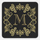 Elegante Schwarz-Gold-Monogramm-Aufkleber Quadratischer Aufkleber