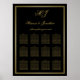 Dieses elegante schwarz-goldene Sitzdiagramm zeigt ein Imitat mit Goldkalligraphie-Monogramm mit den Namen der Braut und des Bräutigams, um sich mit einem goldenen Rahmen aus Imitat auf schwarzem Hintergrund zu personalisieren. Passt bis zu 12 Tabellen an. Entworfen von Susan Coffey.