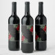 Elegante Schwarz-Gold-Script-Hochzeit mit Roter Fl Weinetikett