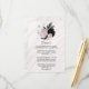 Elegante rosa und schwarze Blume mit grauen Blätter auf der botanischen Details-Umschließkarte aus silbergrauem Marmor.