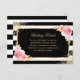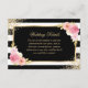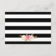 Elegante, schwarz-weiß gestreifte, blumengeschmückte Hochzeitssteg-Einsatzkarte mit Aquarellrot, Rosa, Elfenbein und Pfirsichfarben und goldener Vegetation. Matching-Elemente verfügbar.