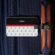 Elegantes schwarz rot und silber Gepäckanhänger. Personalisierter Name auf schwarz mit rotem Streifen und Diamanten auf silberem Hintergrund.