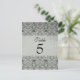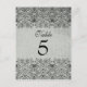 Diese elegante Vintage Hochzeitspostkarte hat eine schwarze Damast-Tischnummer oben und unten mit einem verblassten silbergrauen Hintergrund. In der Mitte können Sie leicht die Tischnummer anpassen. Dies ist eine wunderschöne Hochzeitskarte, die für alle Jahreszeiten besonders für Herbst/Herbst und Winter gut geeignet wäre.