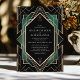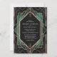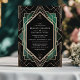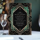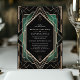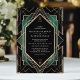 Freuen Sie sich auf ein stilvolles Fest mit dieser eleganten Art Déco-Hochzeitseinladung. Freuen Sie sich auf ein atemberaubendes goldgeometrisches Muster auf einem schwarzen Hintergrund mit luxuriösen smaragdgrünen Akzenten. Das zeitlose Design und der Vintage Charme machen es zu einem idealen Ort für eine Hochzeit mit einer Touch aus dem Glamour der 20er Jahre. Ideal für Paare, die den klassischen Stil und den Luxus schätzen, besticht diese Einladung wunderbar durch das Wesen der Art-Déco-Ära.