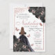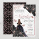 Elegante Schwarz und Rose Gold Floral Quinceanera Einladung