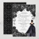 Elegante Schwarz und Silver Floral Quinceanera Einladung