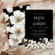 Diese elegante Schwarz-Weiß-Blumen-Hochzeitseinladung bietet Herbst & Winter-Blume. Schwarzer Hintergrund mit weißem Text und weißen Hochzeitsblumen. Der Hintergrund größerer weißer Blumen ist optional. Alle Texte, einschließlich der Namen, können geändert werden.
