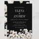 Elegante Schwarz-Weiß-Blütenhochzeit Einladung